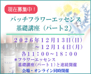 ●「バッチフラワーエッセンス基礎講座(パート2)」2026年12月期の募集を開始しました。